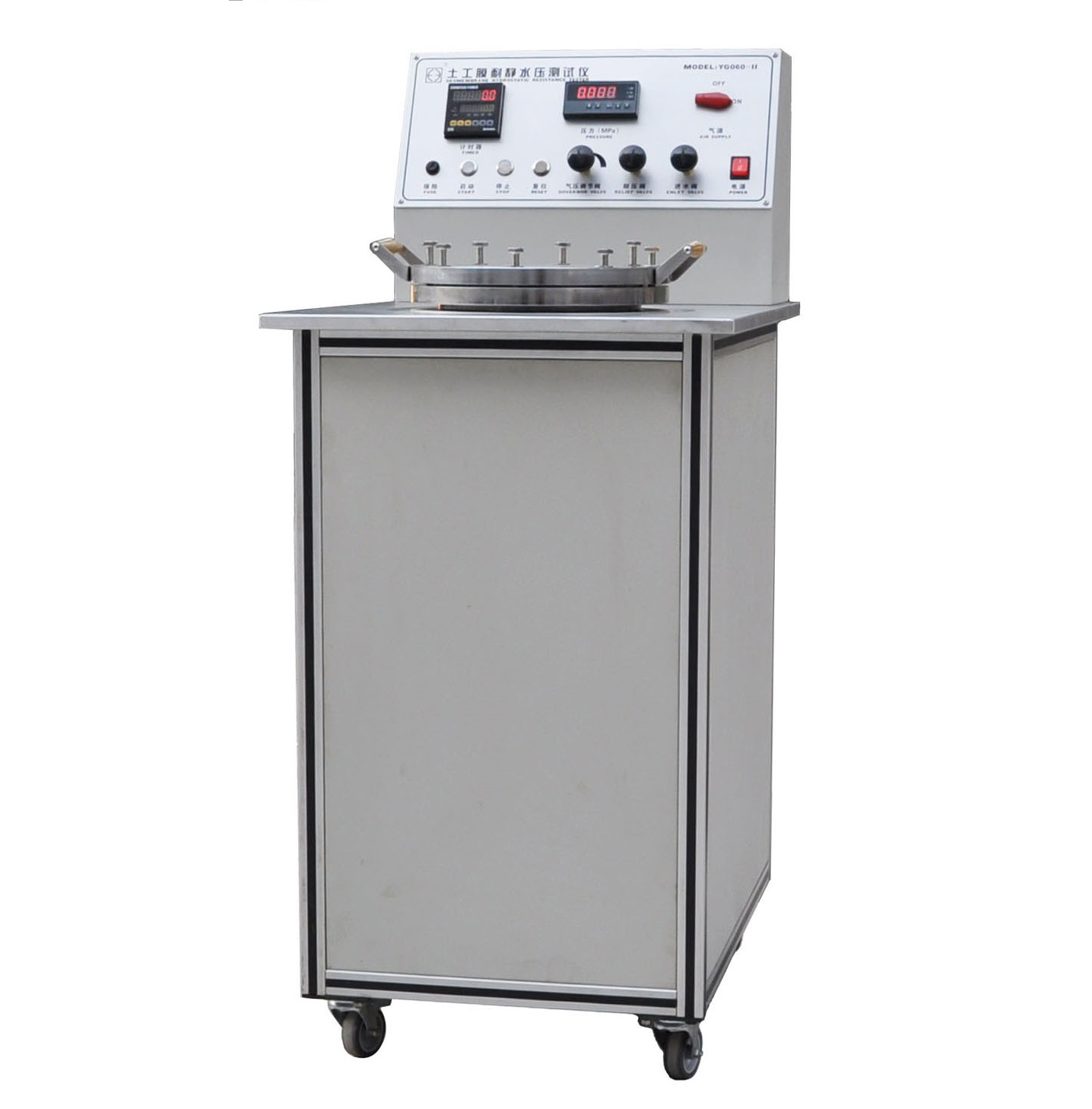224 YG060-Ⅲ 土工膜耐靜水壓測試儀 GB/T19979.1-2006、GB/T19979.2-2006、GB/T17642、JTG E50 T1142等標(biāo)準(zhǔn)。